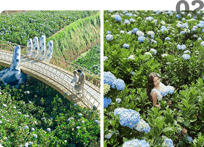 大叻因其常年溫和涼爽的氣候,適宜多種花卉生長而被譽為「花城」,其中四季盛開的繡球花以繽紛色彩點綴山城,藍、紫、粉、白的花海交織成浪漫景致。漫步其中,彷彿置身於夢幻花園,是攝影愛好者及自然愛好者的絕佳去處。