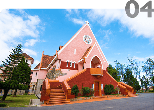 瑪麗修道院是大叻最著名的三座教堂之一,以典型的法國古建築風格設計,於1940年開始建造。修道院本身不像教堂那麼高聳,但粉嫩嫩的顏色與尖塔式教堂,周圍綠茵環繞,藍天白雲映襯,很是搶眼。