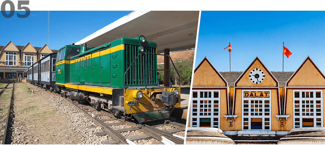 車站最初連接大叻與藩朗,全長84公里,但現僅保留7公里觀光路線,供遊客搭乘復古蒸汽火車,穿梭於松林山丘與繡球花田之間。