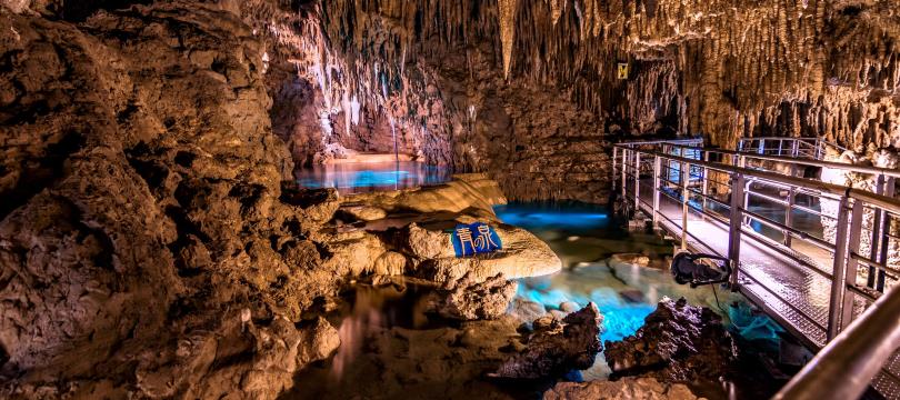 【玉泉洞】是沖繩最大鐘乳石洞,長達5公里的地底奇景經30萬年形成,壯觀的石筍與燈光交織成奇幻秘境。緊鄰的【王國村】則完整呈現琉球時代的生活樣貌,可體驗玻璃工藝、傳統染織等手作體驗,還有震撼的【琉球大鼓表演】,節奏激昂、熱力十足,讓人彷彿穿越時空回到古琉球!是結合自然奇觀與文化體驗的超人氣沖繩景點。
