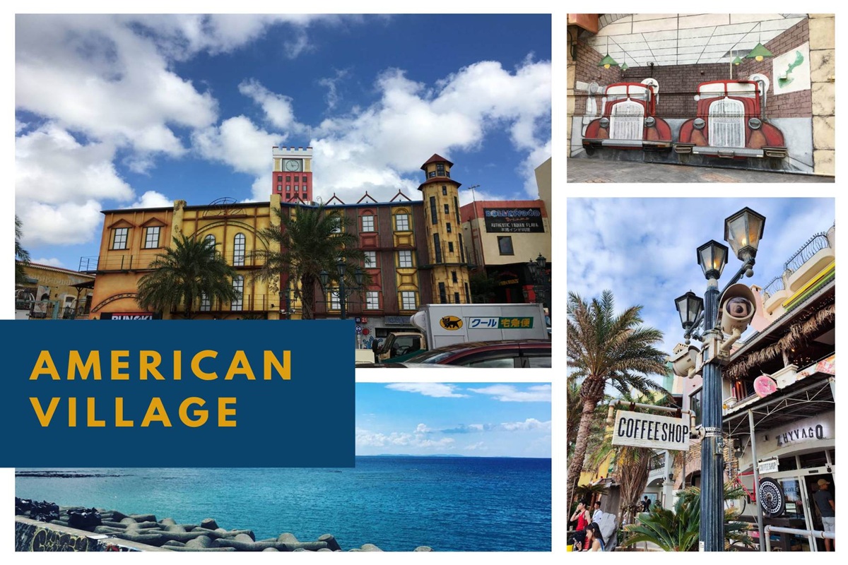 是一處綜合文化商業設施,美國村內擁有以3D映像為主體的娛樂設施,8個屏幕的電影館、購物中心、保齡球場、美國餐廳、錄音室、娛樂中心、進口雜貨店等,另備有運動的複合設施。《戀戰沖繩》另一個拍攝場,正是好個美國風情的最in最潮流的大型購物娛樂區,是去沖繩的掃貨之選。離沖繩美軍基地只約五分鐘車程的美國村 (American Village),日本地道精品、服裝到處係,亦由於該處鄰近美軍家屬的居所,很多商舖亦充滿著美式風情,於是一個大型美日混合消費區。
