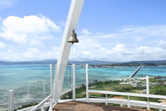 【古宇利海洋塔】位於古宇利島上。從海拔82m(建築物本體36m)的高處望去古宇利多層次的海,那高透明度的翡翠綠顏色閃閃發亮。展望塔一共有4層,各層都有設置展望室。除了展望塔之外,還有貝殼博物館,展示了1萬枚以上來自世界各地貝殼,伴手禮店販售古宇利島限定的商品和小點心,以及餐廳等娛樂項目豐富多樣的主題休閒設施。