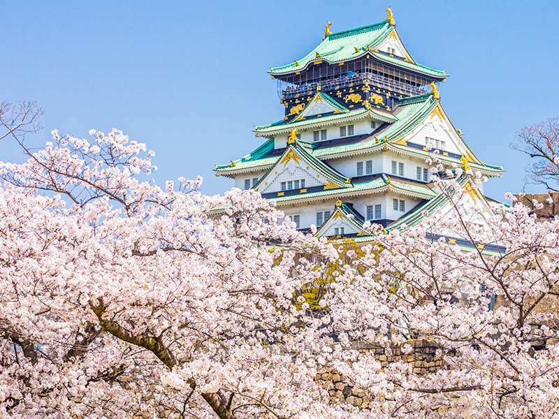 【大阪城公園】參觀全世界現存的大阪城為1931年由民間集資重建,外觀5層,內部8層,高54.8米,7層以下為資料館,8層為瞭望台。城牆四周建有護城河,附近有風景秀麗的庭園和亭台樓閣。漫步河邊,奇花异卉,滿目青翠,充滿詩情畫意。