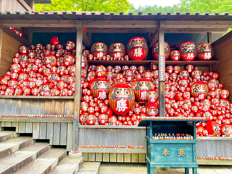 【勝尾寺】位於大阪箕面市的「勝尾寺」,以境內遍佈的「達摩不倒翁」而聞名,也被尊崇為祈求勝利和吉祥的寺廟。對於祈求合格與勝利十分靈驗,不但是許多生意人和學子喜歡參拜的地方,自古以來更是將軍武士以及現今政治人物等渴求勝運之人的信仰中心。