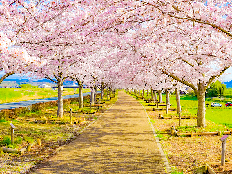 【小野櫻花迴廊】位於兵庫縣小野市的「小野櫻花迴廊」是關西地區著名的賞櫻勝地,約有4,000株櫻花沿著加古川支流「大池」與「小池」周邊盛開,形成長達4公里的夢幻櫻花隧道。每到春天,粉嫩花瓣映照在水面上,宛如畫卷般浪漫,白天可欣賞櫻花與湖泊交織的清新景色,夜晚點燈後更展現出夢幻迷人的氛圍。園內還設有散步道與草坪,適合悠閒漫步或野餐,是家族、朋友與團體賞花的理想去處。