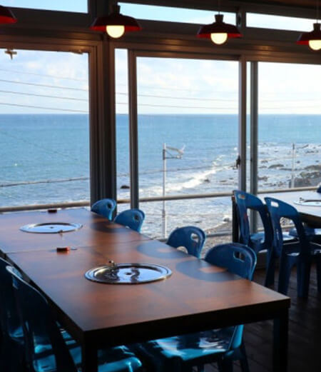 是釜山海雲臺地區非常著名的海鮮餐廳,以其無敵的海景座位和新鮮美味的烤貝料理而聞名。餐廳位於海雲臺海邊,大片落地窗讓您在用餐時,能將蔚藍的大海盡收眼底。特別是在日落時分,夕陽將海面染成一片金黃,景色更是浪漫迷人。
