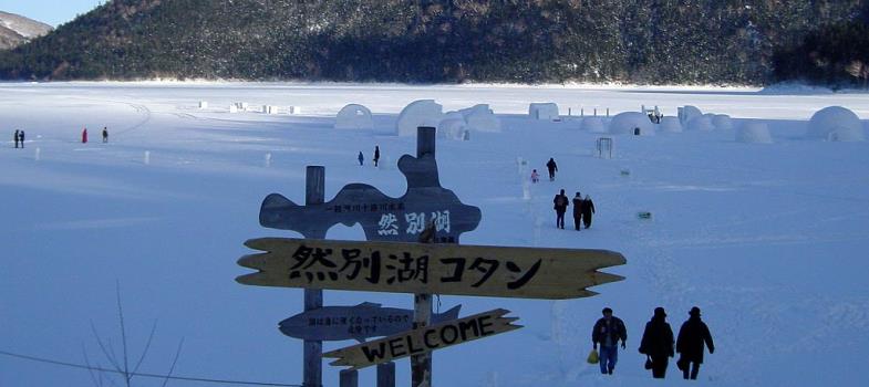 最早是為了祭祈然別湖神,爾後慢慢發展出「冰上村」,有冰屋、冰雪酒吧、冰之教堂等和最大亮點-冰湖露天溫泉,這是個把圓形浴池放在湖上,引進湖畔的天然泉水的露天溫泉,甚至連接浴池的梯級就全部以冰塊建造。