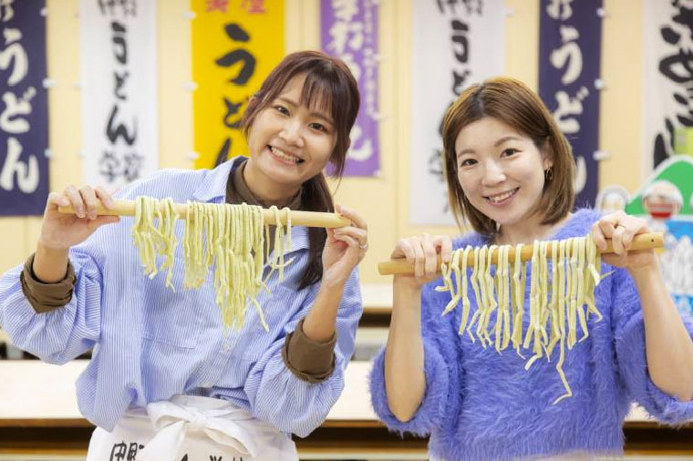 香川縣是日本首屈一指的烏龍麵之鄉,在體驗活動中製作手打讚岐烏龍麵,只要跟著老師的指導教學,把麵粉揉成麵糰後,再經過踩踏麵糰、桿麵糰和切麵等步驟,就能製作出傳統的讚岐烏龍麵條。