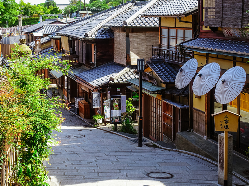 二、三年坂京風小舖古街位於清水寺前的二年坂、三年坂街道保留著古街的風貌,延路佈滿風情殊異的陶藝館、古董店、茶館等,邊走邊閒逛此街道,既可購物、小憩、品茗,還有很多賣著仙貝、清水燒、抹茶冰淇淋的小店等,除了熱情殷切免費試吃令人印象深刻外,偶而還會看到打扮成藝妓的女子穿梭其間。