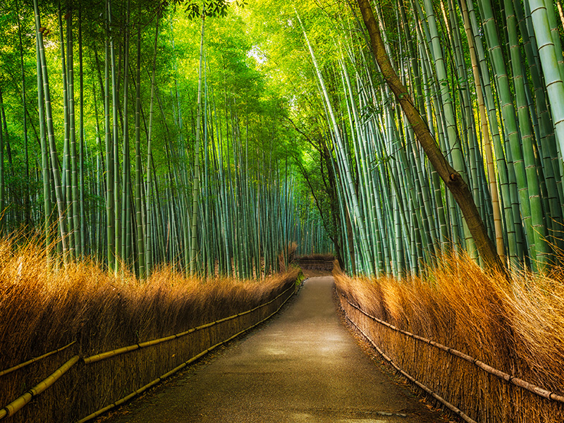 【嵯峨野竹林步道】從大河內山莊的野宮神社之間約 200 米的很有意境的竹林小徑,也是嵐山的經典景點之一,穿過幽幽孟宗竹林,靜幽詩情,閑靜中盡是畫意。