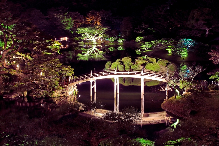 【栗林公園】在園林文化遺産中,有國家指定的特別名勝。其中,栗林公園最大。它以深綠色的紫雲山爲背景,巧妙地分布著六個水池和十三座假山。作爲江戶時代初期,以有著近四百年曆史著稱的環遊式大名園林,栗林公園有著優越的地域劃分,也有點景石,同時又富有木石的雅趣。栗林公園的春夏秋冬有著不同的風光。這裏有一千顆姿態優美的松樹,景象可以說是一步一個變化,非常美麗。栗林公園經曆了漫長的歲月,被人們所喜愛,一直留存到現在,如今已經成爲不可替代的文化遺産。
