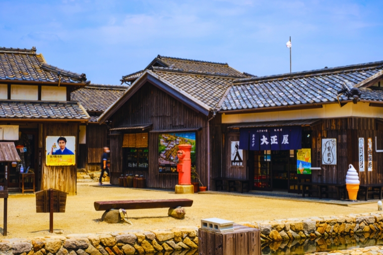 【二十四瞳映畫村】二十四瞳電影村是以電影『二十四之瞳』背景道具改建而成,呈現大正・昭和初期的村落景象,兼具日本電影與文學氣息的主題樂園。 『二十四之瞳』是部描述昭和3年至戰後翌年間的動盪時代,新任女教師與12位孩童間的師生愛小說,由小豆島出身的作家—壺井榮撰寫而成。 進入村內散發出昭和氛圍的木造校舍,令人懷舊。