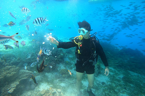 前往位於宿霧市郊的鯨鯊保育區~歐斯陸,抵達後聆聽解說員進行鯨鯊生態和安全守則說明,隨即跳上賞鯨鯊船向大海駛去,剛開始船在海灣中繞著圈子,一但聽見工作人員傳來:「鯨鯊!」的呼喊,他們隨即關掉動力馬達,隨即戴上蛙鏡、咬緊呼吸管,噗通跳下水,準備與鯨鯊面對面近距離接觸!此時在海面下只能聽見船夫的划槳聲跟鯨鯊的吐氣聲,經歷這場空前絕後的與鯨鯊共舞的節目之後,相信許多人在短時間之內,都難以平撫興奮地情緒。