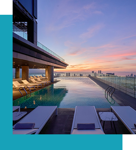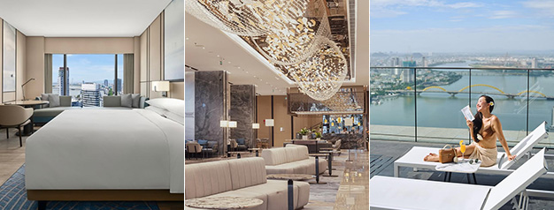 高達 45 層的建築矗立於峴港市心,窗外所見即是峴港最具代表性的都會風景,酒店高達 45 層,客房擁有落地窗景,可俯瞰城市與河岸夜色;空間設計簡約大器,體現萬豪對舒適與功能的完美平衡。