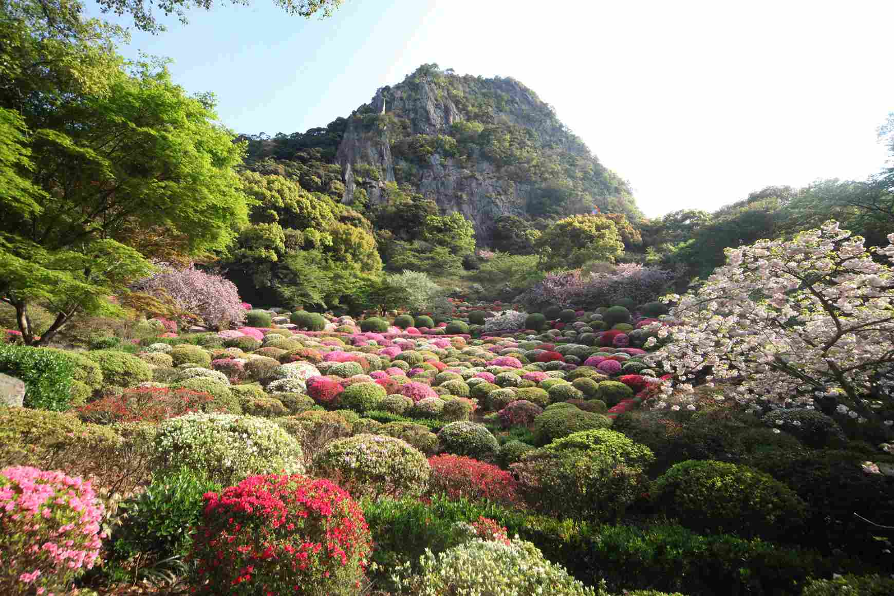 佐賀縣武雄市的象徵御船山,山腳西側為武雄領主鍋島茂義費時3年時間所建造的別莊,現為御船山樂園。春天有二千多株的櫻花、二十萬株的杜鵑花齊開爭艷,以御船山的斷崖為背景,有如中國的山水畫般形成壯麗的景觀。擁有170年歷史的九尺藤,隨風搖曳充滿了和式風情相當淡雅。秋天之時有十五萬坪楓紅,從御茶屋可觀賞到一整片楓葉與山、湖間的倒影,一年四季都能夠欣賞到不同美景,前來造訪的旅人如織。