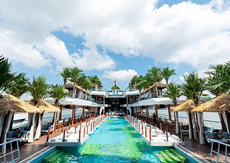 是下龍灣最具特色的豪華娛樂巡航體驗之一,其融合壯闊自然景觀與頂級海上休閒設施,滿足追求舒適、娛樂與美食的旅客之需求。