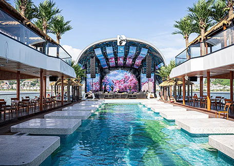 本遊船外觀設計現代且具標誌性,內部空間寬敞,設有越南最大的一年四季泳池與鹽水 Jacuzzi,旅客可在碧綠海水景致中暢泳放鬆。此外,船上亦設有首創的浮動圓頂舞台(Dome Stage),配備國際標準的燈光與音響系統,定期舉辦現場音樂與派對活動,營造歡樂氣氛。