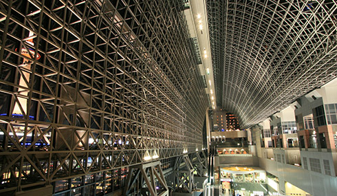 斥資200億日幣的京都新火車站於1994年落成;由日本著名建築師原廣司設計,著名的流水瀑布電扶梯由自然光影調下的現代感,有大排階梯直上屋頂,頂上有空中庭園可體會京都迷人風情。鋼骨和玻璃構成的結構體讓京都車站隨著光影變化,走在其間便能時時感受它的不可思議。為平安遷都1200年紀念活動的重要一環,作為觀光都市京都玄關的京都車站,巨大的車站建築彷彿現代藝術品一般擁有壓倒性的存在感。京都車站外觀以鏡面組成,映照出京都塔。充滿魄力的景色令許多國內外的旅客驚豔。
