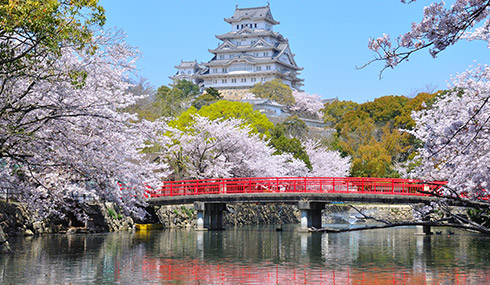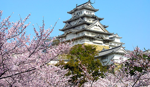 兵庫縣姬路市的世界遺產【姬路城】(不上天守閣),其白色城牆及蜿蜒屋簷造型,猶如展翅欲飛的白鷺,所以又有「白鷺城」之稱。西元1333由赤松則村開始在姬路修建堡壘,後經包括豐臣秀吉在內的數代城主陸續擴建,至西元1601年由西國將軍池田輝正(德川家康的女婿)花了8年的時間才大致完成全貌,至今四百多年來多次戰火卻都能倖免於難,由於其保存度高,被稱為「日本第一名城」。