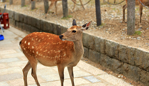 綠草如茵最有名的象徵物是成群的鹿,並有1200頭穿梭在遊客中不怕生人,讓人餵食照像;傳說春日大社的神祇,就是乘著鹿降臨此地。