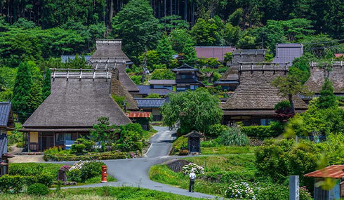 美山町「美山かやぶきの里」與白川郷合掌村及福島縣大內宿並稱為日本三大現存的茅葺屋集落。目前かやぶきの里北村中約有50戶建築,其中約有40棟茅葺屋(其中多數為住宅)並於1993年被選為國家重要傳統建造物群保存地區。一整片望過去,寧靜無聲的村落、排排並坐的茅葺民屋景色,彷彿也回到日本古時的江戶時代。