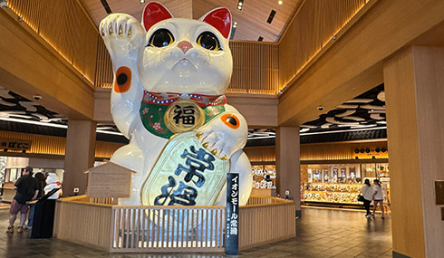 日本吉祥物代表之一的招財貓,其發源地就在常滑地區,而用來製作招財貓的招致技術「常滑燒」也因此發達而聞名。購物中心1樓內有一座高6公尺50公分的巨大招財貓「多福」(お多福),造型討喜可愛,成為大家拍照留念的人氣景點!