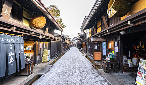 富有傳統氣息的日本街道,進入此街道中彷彿回到三百年前日本的時代中,並有當地之民俗產品,於古街道上帶著懷古情緒尋找飛驒之匠的手藝。「三町」是一之町、二之町、三之町的總稱,是三條近乎平行的南北走向街道,為高山代表散策名所,為國家選定重要傳統的建造物群保存區,故有「飛驒高山小京都」之美稱。