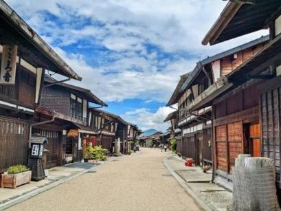 離妻籠宿不遠,街道兩旁皆是江戶風情的木造建築,總長約1公里,是日本最長的宿場町之一。由於位居地勢險峻,許多旅人會選擇在此休息過夜,曾經是中山道上最繁榮的宿場町。 漫步其中彷彿穿越時空回到江戶時代宿場,可以想像當時人潮熙熙攘攘的熱鬧景象。