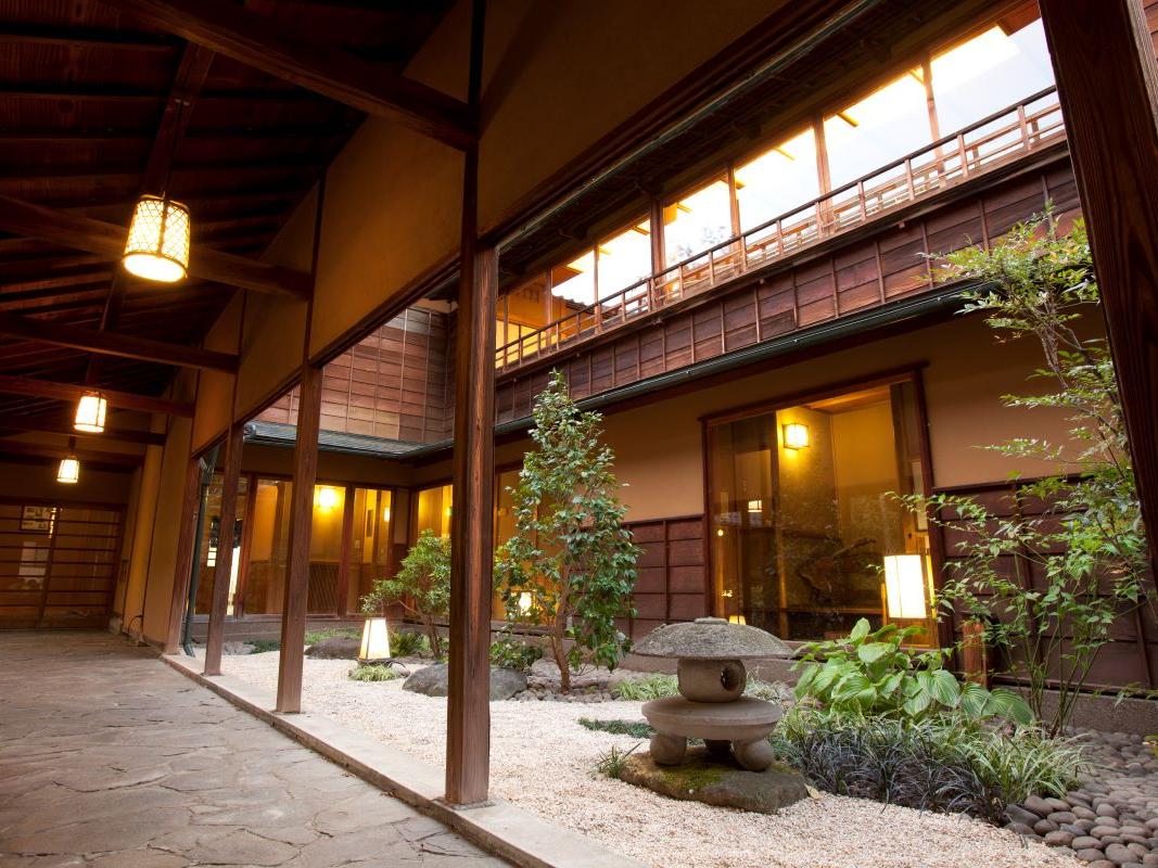 雖不參加任何百選溫泉飯店的評比,卻以細膩的待客之道聞名,自大正、昭和時期便深受皇族與文人雅士喜愛,被譽為「天皇御宿」。旅館佔地三千坪,日式庭園中鯉魚悠然戲游,靜謐而雅緻,完美保留了傳統旅館的幽靜氛圍。庭園裡每一塊石頭都蘊含禪意,細節皆用心雕琢。入住於此,不僅能感受寧靜典雅的和風意境,更能細細品味精緻而高雅的美饌佳餚。