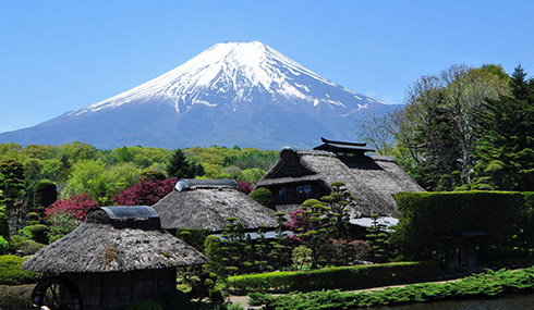 漫步於充滿江戶風情的茅草屋落之間,遠眺雄偉的富士山倒映在鏡池中,彷彿置身於世外桃源。除了欣賞如綠寶石般剔透的湧池,您還可以品嚐當地用天然泉水製作的蕎麥麵、草餅與豆腐,在春日的微風中,深刻感受這份大自然賦予富士山腳下的純淨饋贈。