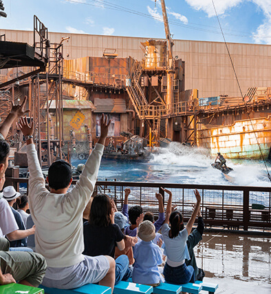 未來水世界 –在未來水世界,你將觀看一場環球影城首屈一指的水上爆破特技表演!從水上摩托艇極速俯衝的驚險特技,到飛機觸目驚心的墜毀現場,你將零距離感受扣人心弦的生死搏鬥帶來的逼真體驗。