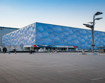 【水立方】正式名稱為國家游泳中心,是2008年北京奧運的主要場館之一,也是2022年北京冬奧會的經典改造場館,曾被評為「中國十大新建築奇蹟」。 外觀呈正方形,設計靈感來自中國傳統文化中的水元素以及泡泡圖案,使用了先進的ETFE膜結構作為外牆材料,具有良好的保溫隔熱性能及環保特性。