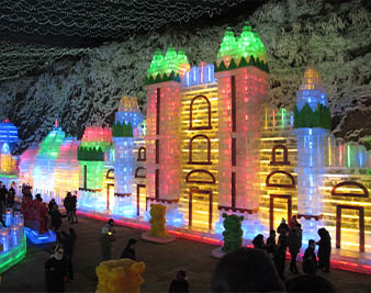 每年一度的龍慶峽冰燈是華北地區的一大景觀,也是冬季旅遊的理想選擇,有京郊一絕之稱。歷屆冰燈節的主題儘管不同,但順水庫大壩飛流直下的冰瀑奇觀,卻年年保留,70米高的巨壩上垂下巨大冰瀑,下飾冰花、冰柱,形成一座飛流千尺晶瑩剔透的冰雪樂園。美麗的龍慶峽冰燈藝術節,帶給遊客一片歡樂。龍慶峽總要舉辦一年一度的冰燈藝術節。龍慶峽的冰燈,辦出了自己的特色。