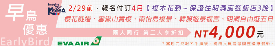 今日於『台灣桃園國際機場』航空公司櫃檯前集合,由專業的領隊幫您辦妥登機各項手續,搭乘豪華客機飛往【韓國】。