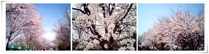 汝矣島的輪中路是首爾市內最具代表性的櫻花隧道。輪中路位於汝矣島國會議事堂後方,路的兩旁都是樹齡30~40年的櫻花樹,共1400多棵。每年的4月上旬到中旬,長5.7公里的輪中路,櫻花便開始綻放,形成一條長長的櫻花隧道,每年都有吸引250多萬人次前來賞花。