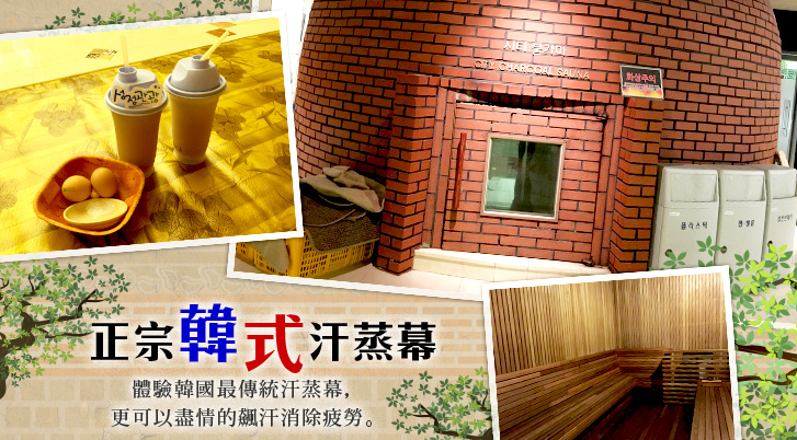 據不同主題設計而成的各式各樣高溫房間,如SAUNA、黃土汗蒸幕房、玉汗蒸幕房、玉冷凍房、…等,可以在裡面飆汗解除疲勞(每家汗蒸幕提供的設施皆不同),其他設施如餐廳、按摩椅、PC房、DVD房、娛樂室、健身房、…等等可以入場但需自費,不含在汗蒸幕費用裡。