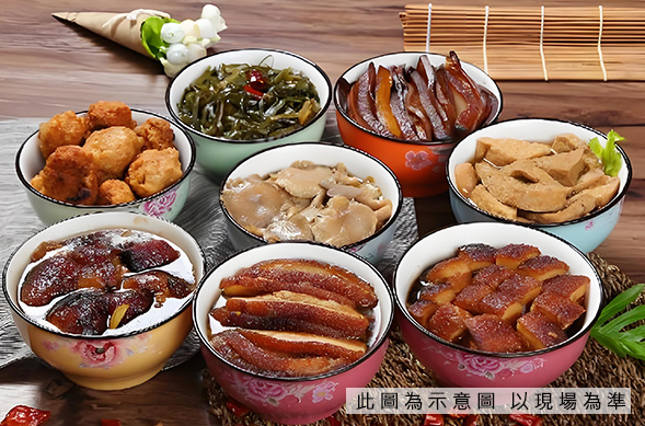 「滿族八大碗」是滿族飲食文化中最具代表性的傳統盛宴之一,起源於清代宮廷與貴族家庭。以八種經典菜餚組成,常見有紅燒肉、丸子、扒雞、扣肉、排骨等佳餚,講究大碗盛裝、份量十足,象徵富貴吉祥與喜慶團圓。這道盛宴融合了燉、燒、扒、炸等多樣烹飪手法,口味濃郁厚重,肉香四溢,展現了滿族人豪爽奔放的飲食特色。如今,「滿族八大碗」不僅是佳節宴飲的首選,更是遊客體驗東北飲食文化與皇室氣派的必嚐之選。