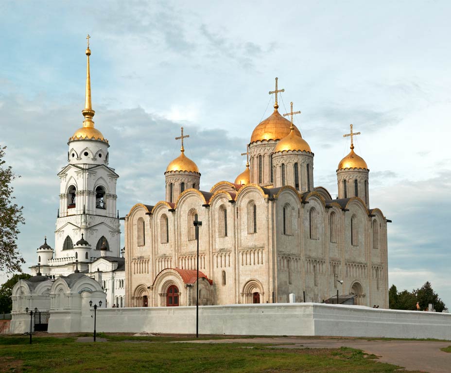 佛拉基米爾:12世紀俄羅斯大公國的首都。佛拉基米爾在十二世紀後半崛起,開始了它光榮的時代。在Andrei Bogolyubsky統治時期,佛拉基米爾成了俄國東北方的政治中心,而在蒙古人統治俄國時,更是以這裡為俄國的首都。在蒙古人統治結束後,佛拉基米爾的政治地位逐漸轉移至莫斯科,在十八世紀,佛拉基米爾成了一省的首府,如今依然保持著特有的風俗及魅力。首先參觀聖母升天教堂、金門並欣賞以佈局獨特雕飾小巧精緻聞名的聖德米契大教堂。