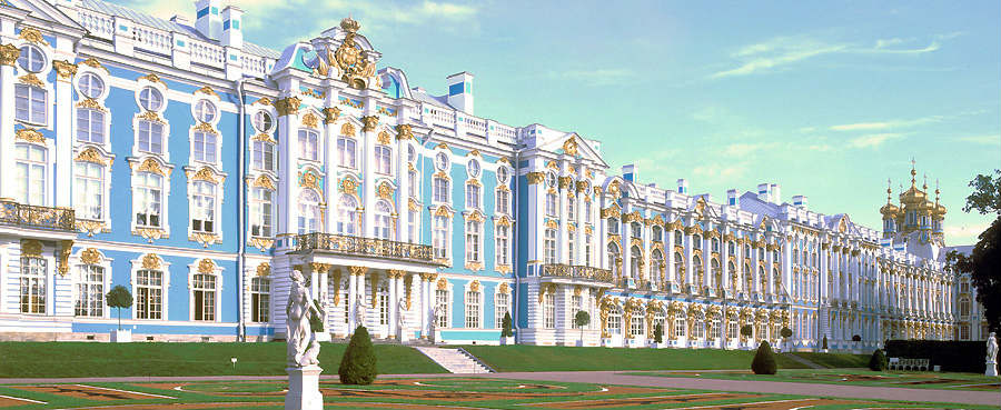凱薩琳宮:彼得大帝在波蘭征戰之前送給其妻凱薩琳一世一塊位於沙皇村的土地,始為凱薩琳宮雛形。後彼得大帝之女伊莉莎白女皇將其發揚光大,於1741年決定於同地點興建一座更為豪華的宮殿,並任命-拉斯崔理仿凡爾賽宮的設計樣式,建造此座金碧輝煌的巴洛克式風格的宮殿。