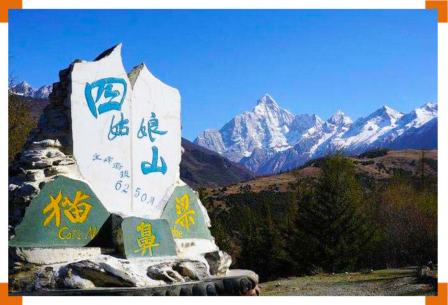 【貓鼻樑】(海拔約3500公尺)位於四川省阿壩藏族羌族自治州小金縣,是觀賞四姑娘山全景的絕佳地點。這裡視野開闊,可一覽四姑娘山的四座主峰,尤其是雪山在陽光照耀下熠熠生輝,宛如仙境。前往貓鼻樑的路途較為崎嶇,建議做好高原反應預防措施。