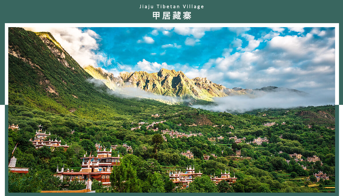 【甲居藏寨】(海拔約2200公尺)坐落於中國四川省甘孜藏族自治州丹巴縣,是嘉絨藏族的文化與建築藝術的集中展現。這裡的藏寨依山傍水,錯落有致地分佈在綠意盎然的山坡上,形成了一幅幅如詩如畫的田園風光。甲居藏寨的建築多為石木結構,外觀質樸而堅固,內部則裝飾精美,充滿了濃郁的藏族風情。