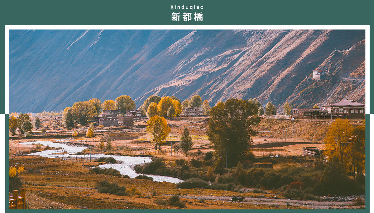 【新都橋】(海拔約3500公尺)位於中國四川省甘孜藏族自治州康定市,素有「攝影家的天堂」之美譽。這裡地處川藏線要衝,四周群山環抱,河流蜿蜒,草原遼闊,四季景色各異,尤其是秋季,金黃的楊樹、碧藍的天空與遠處的雪山交相輝映,構成一幅幅如詩如畫的美景。