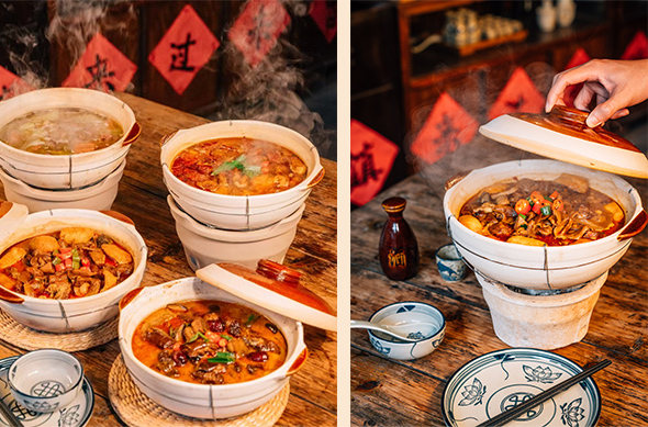 陶鍋裡翻滾著湯氣與香氣,熱氣裡藏著人間最柔軟的溫度。食材以當季為本,湯底細火慢煮。